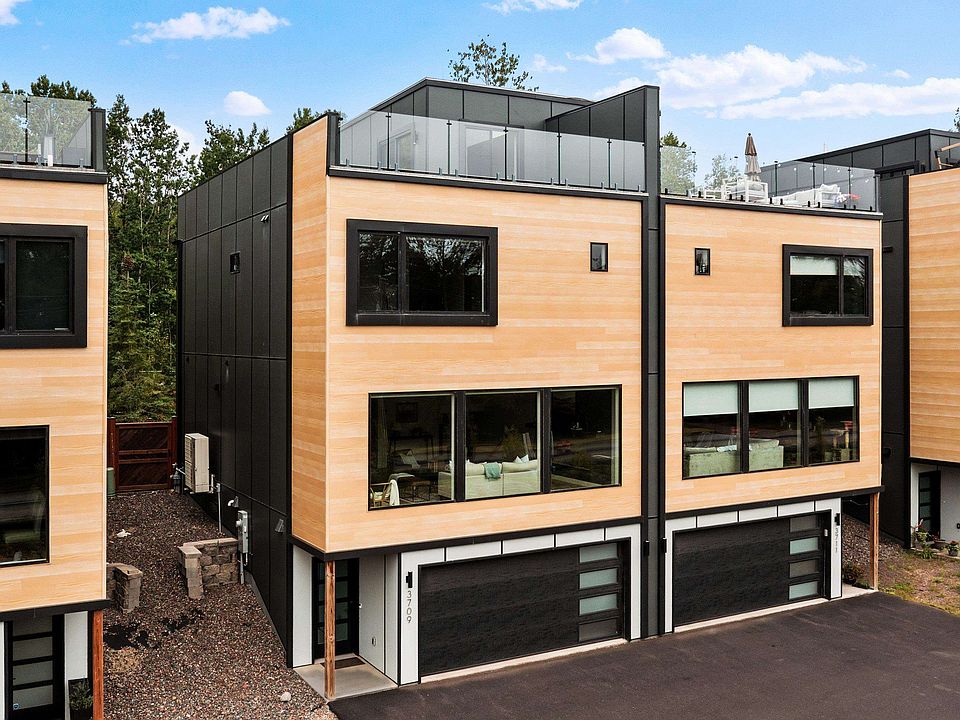 Welcome to the new London East Development, where modern design meets everyday comfort just steps from Duluth’s most beloved amenities. This custom built home offers exceptional craftsmanship and thoughtful details throughout. From the attached two-car garage, step into a welcoming guest suite complete with private full bath, a perfect retreat for visitors. The main level is flooded with natural light, featuring an open layout with a fireplace anchored living room, dining room, and a chef’s kitchen with stainless steel appliances, hard surface counters, pantry, and a center island with plenty of seating. Sliding doors extend your living space to a fenced yard with maintenance free decking and turf. Upstairs, you’ll discover three bedrooms, including a serene primary suite with a dream walk-in closet, large enough to feel like its own room, and a gorgeous private bath with double sinks and walk in shower. A ¾ guest bath and conveniently located laundry room complete this level, adding both function and ease. Up a couple steps, the crow’s nest provides endless opportunities as an office, gym, or lounge area and opens to a finished rooftop deck with panoramic views. With a bath on every floor, remote-controlled window shades, zoned in-floor heating, and central air, this home is designed for both luxury and everyday comfort. Here, lifestyle is everything, stroll the Lakewalk, catch summer concerts at Glensheen, or explore both Canal Park and the North Shore within minutes. This home offers not just a place to live, but a way to experience the very best of Duluth.