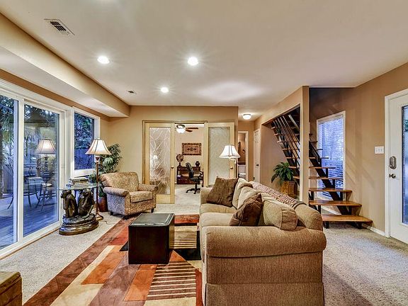 This beautiful property is located in downtown Austin. The location is perfect for accessing all the cultural, educational, business and recreational amenities that the Capitol city has to offer. This wooded setting has ample off-street parking, native and tropical landscaping, backyard deck patio and gardens, upstairs wrap-around balcony with views, and and totally remodeled interior. Plenty of outdoor decks welcome you to enjoy the fresh air and sunshine. Walk to restaurants and parks on the waterfront or relax in the secluded neighborhood setting. Owner pays for lawn care.