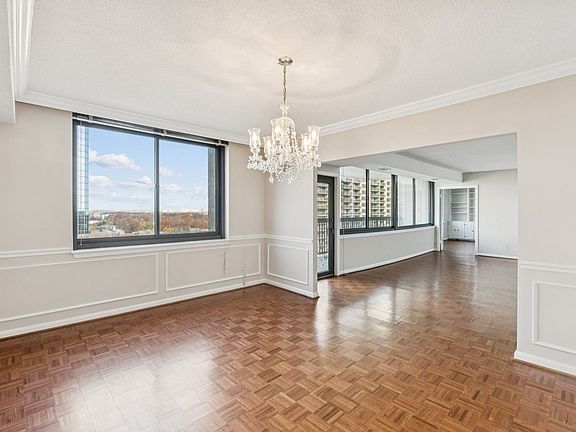Spectacular 3-bedroom, 2.5-bath residence on the 11th floor, offering over 2,000 sq. ft. of interior living space plus a large private balcony with sweeping, unobstructed views. This spacious home features an open floor plan with classic parquet hardwood flooring and a fully renovated kitchen showcasing striking blue wood cabinetry, granite countertops, and stainless steel appliances. One of the bedrooms includes custom built-insperfect for a home office. The expansive primary suite offers an ensuite bath and generous walk-in closet. Additional highlights include central heating and cooling, abundant natural light, and exceptional storage with multiple large closets plus a separate storage locker. Residents of Skyline House enjoy premium amenities: swimming pool, fitness center, library, party room, billiards room, sun decks, bike storage, and 24-hour concierge service. The unit includes one garage parking space with ample guest parking available. Ideally located just steps from everyday conveniences and popular destinationsStarbucks, Harris Teeter, Target, Trader Joe's, and more. Minutes to major commuter routes and close to Shirlington, Pentagon City, Amazon HQ2, Old Town Alexandria, and downtown DC.