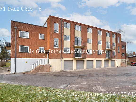 Lucky Find! This unit comes with 1 garage parking spot and 1 spot in the lot as well! Welcome to 371 Dale Crescent, where modern living meets convenience. This charming one-bedroom unit boasts both style and functionality, making it the perfect space for urban dwellers seeking comfort and ease. Upon entering, you're greeted by a cozy living area adorned with natural light streaming in through expansive windows, creating a warm and inviting ambiance. Step out onto your private balcony, where you can enjoy your morning coffee or unwind after a long day while taking in the serene views of the surrounding neighborhood. The bedroom offers a tranquil retreat, providing ample space for relaxation and rest. With a well-appointed closet, storage concerns are a thing of the past, allowing you to keep your space organized and clutter-free. The lovely kitchen, featuring modern appliances that were replaced just two years ago, ensuring both efficiency and style. Whip up delicious meals with ease and entertain guests in the adjacent dining area, creating memories that will last a lifetime. Additionally, the included storage space provides the perfect solution for keeping seasonal items or belongings out of sight. Located in a desirable neighborhood, 371 Dale Crescent offers easy access to a plethora of amenities, including shopping, dining, and entertainment options. Commuters will appreciate the proximity to public transportation routes, making travel a breeze. Don't miss out on the opportunity to make this fantastic unit your new home. Schedule a viewing today and experience urban living at its finest.