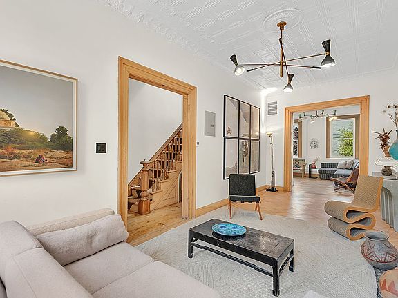 This is something very different; a move-in ready two-family brick house, set up as a single-family home, designed and built by Brooklyn based CW Design. Renovated with the goal of balancing the old with the new, the house retains many of its original details (marble mantels, restored custom millwork, tin ceilings, railings and balusters), with a modern aesthetic in the kitchens and bathrooms. The London-style kitchen is arguably the centerpiece of this house, with an imposing wall of floor to ceiling glass doors that open into the Japanese garden, a stunning sculptural marble island, radiant floor heating, and a six burner stove. High-end finishes throughout the house include Fisher Paykel appliances, Dornbracht plumbing fixtures, WAC architectural lighting, wide plank oak floors, radiant heating, Italian marble in bathrooms, ice stone countertops, and ductless mini-split A/C system, and all mechanicals (plumbing, A/C, and electric) are new. Custom skylights are from the London-based company Glazing Vision. And the kitchenette in the bedroom hallway means you can have coffee in bed. The 300 block of Decatur Street is a beautiful tree-lined stretch of Stuyvesant Heights, with an active block association and neighbors who take pride in their homes and gardens. 371 Decatur measures approximately 17 x 40 feet on a 100 ft lot.