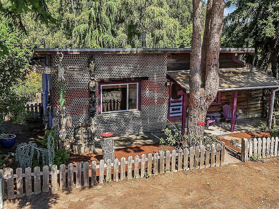 Welcome to your charming coastal retreat! This unique 3-bedroom, 1-bath home is a true artistic gem, nestled on a spacious lot just steps from the beach. Relax & unwind in your hot tub, under the gazebo, with an outdoor shower. Discover a blend of nature & creativity in your enchanting yard, featuring a stunning bottle fence, magical totem poles & a lush apple tree alongside fruitful blackberry bushes. The front of the home features a unique style for aesthetic & insulating purposes, with bottles built-in. The home was at one time, the Irondale General Store; offering peek-a-boo water views, a large workshop, to restore it to its former glory, covered carport and more. Conveniently located, just minutes from PT, grocery & hardware stores.