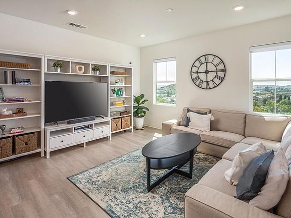 Welcome to this impeccable 2020-built townhome nestled in the heart of San Marcos. Boasting 3 spacious bedrooms and 2.5 baths, this meticulously maintained home with natural light and beautiful views offers a blend of comfort and elegance. The main floor features high ceilings, an open concept living room, spacious kitchen with breakfast bar seating, and a dining area that opens to a private patio, overlooking peaceful, panoramic views. Each of the three generously sized bedrooms have been thoughtfully designed, and the baths feature tasteful finishes and ample storage space. Enjoy the convenience of in-home, bedroom-level laundry, an attached two-car garage, and owned solar! The neighborhood itself offers a children's playground, multiple barbecues, and picnic tables for hosting and socializing. Nestled in a tranquil community, this townhome allows you peace, quiet, and privacy, all while located just around the corner from San Marcos' finest shops, restaurants, and entertainment.