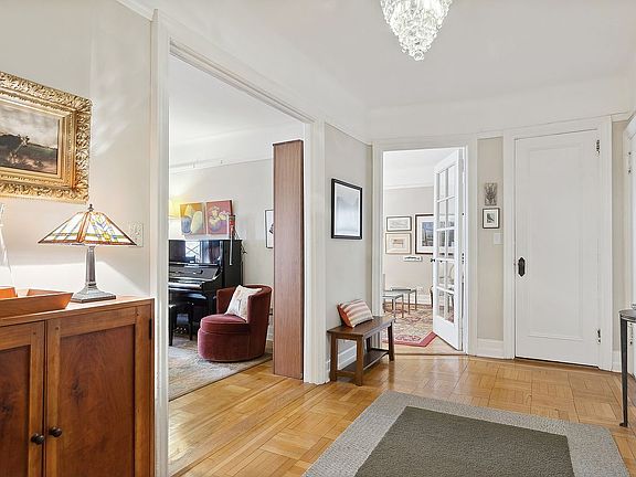 Lovingly renovated throughout with preserved 1920s details such as picture rail molding, hardwood parquet floors, pristine skim-coated walls painted with Farrow and Ball, over 9 ft. ceilings, electrical upgrades and 6 large closets plus a wall closet unit in the Primary.
