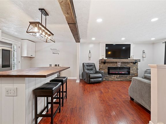 Outstanding Split Entry Home with Large, Fenced Yard! New Kitchen with White and Gray Cabinets, Granite Counters, Ceramic Back Splash, Stainless Steel Appliances and Island with Seating! Composite Deck off Kitchen. Beautiful Stone Fireplace with Timber Mantle and Low and Wide Electric Fireplace. Updated Main Bathroom. Lower Level Features Game Room with Brick Fireplace and New Bathroom. Two Car Garage. Fenced Rear Yard with Above Ground Pool and Shed.