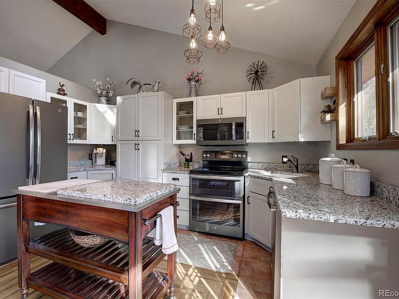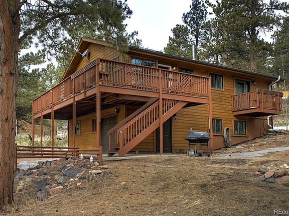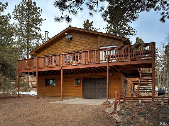 Ready for your New Year move to the foothills? Then this lovely Bailey Raised Ranch is perfect for you! Updated and well maintained home is move in ready, new granite counters, fresh white cabinets and newer appliances. Great dining/breakfast nook area, open floor plan has plenty of windows for natural light and picturesque south & west views. Bamboo wood flooring throughout, fresh paint. Main level large Master Suite with walk-in closet with barn doors and en suite master bath also includes it's own private deck overlooking the beautiful aspen trees. Lower level hosts a large family room with a very efficient wood burning stove; second bedroom (currently used as an office) opens to large bathroom with laundry room, newer GE washer & dryer and has a separate entrance to garage. This property has truly been cared for having the outside grounds cleared and mitigated. Plenty of parking on property and in the oversized (deep) one-car attached garage with new custom built shelves and cabinets and ready for all of your tools. Large south facing wrap around upper deck is perfect for entertaining, relaxing and taking in the foothill mountains and beautiful pine and aspen trees as well as watching the wildlife. Two well-kept storage sheds for additional storage, larger shed is insulated and heated. New roof added in 2019. Plenty of privacy in scenic Harris Park with easy commute to Hwy 285 and local amenities. This great place in Park County could be your getaway in the beautiful Colorado foothills!
