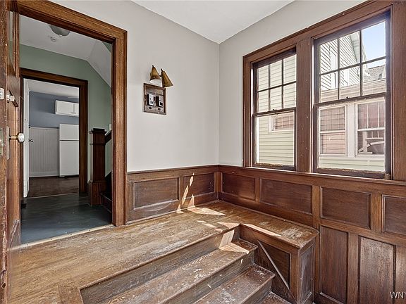 Well maintained Village of Kenmore double offering character, functionality, and great investment potential. Original details like leaded glass and natural woodwork adorn the front foyer. Lower unit showcases vinyl flooring, wall-to-wall carpet, a tiled bath with a deep soaking tub and an extra bonus room with sliding glass doors leading out to the back deck, perfect for relaxing or entertaining. Upstairs, you will find beautiful hardwood floors, natural woodwork, and a top porch/balcony to enjoy the outdoors. Both units come equipped with kitchen appliances, formal dining and built-in storage in living room and by bathroom for linens. Additional features include full basement with laundry hook ups and glass block windows, full attic for storage, 2-car garage and a private partially fenced backyard. Brand-new roof summer of 2025. This property is an ideal opportunity for owner-occupants or investors alike.