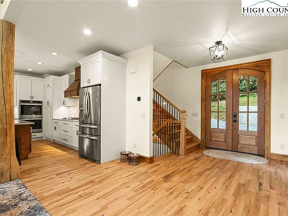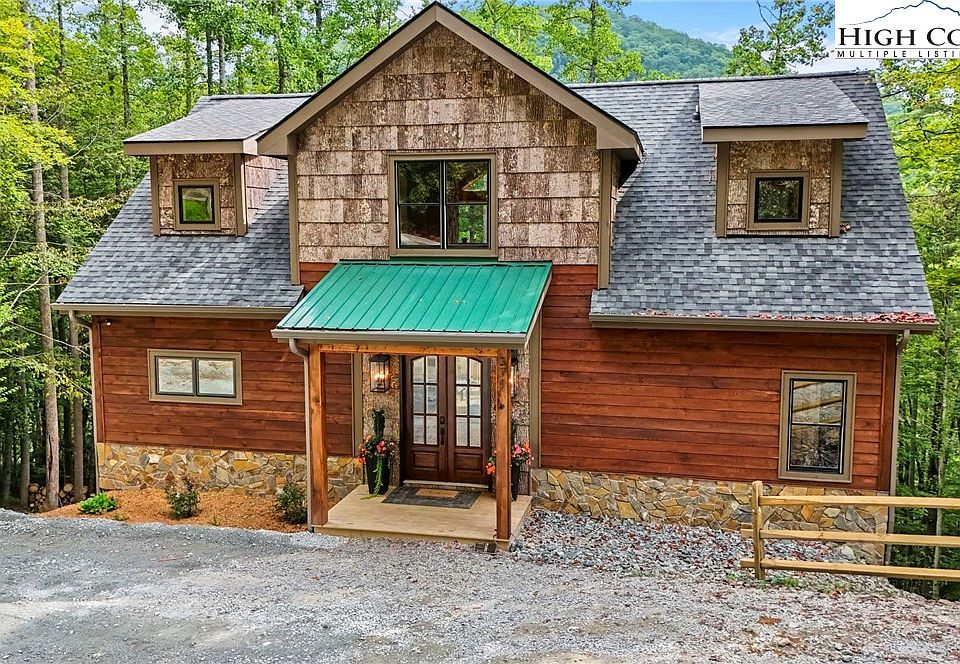 NEW construction in Blowing Rock; C/O was issued 2/7/25! Goal of completion August 2025! Exceptional rental potential (investment!) - short-term rentals allowed! Reputable, local builder. Located off of the entrance or back route to Appalachian Ski Mountain, central to Boone (5 min) & Blowing Rock (7 min), & with easy access to Hwy 321, this property offers a mountain-style home with a great floorplan on just under an acre of low-maintenance land. 4 bedrooms & 5.5 baths (4 SUITES!) plus office/flex room with attached full bath; perfect for year-round living or vacationing! An open Great Room with cathedral ceilings, a grand stone fireplace, & wall of windows serves as the center of the home, while the kitchen offers ample counter space and access to the 'hidden' laundry (hidden/disquised door). The spacious kitchen & dining is open to the great room as is a loft above. The primary bedroom suite on the walk-in level offers a bath with dual vanities & tiled shower, walk-in closet, and deck access. Find two more BR/BA suites on the 2nd floor while the lower level offers an additional living room with fireplace, concrete floors, & deck access, another BR/BA suite, theater or media room, and an office/flex room with attached full bath (w/ door to hall, doubling as a half bath for guests on the lower level)! Amenities: fire pit, soft & seasonal mountain and river views, covered front porch/entry, spacious upper & lower decks, laundry locations on all three floors, paved community roads, high-speed internet, convenient location! Enjoy a walk down to the river at nearby Payne Branch Park!