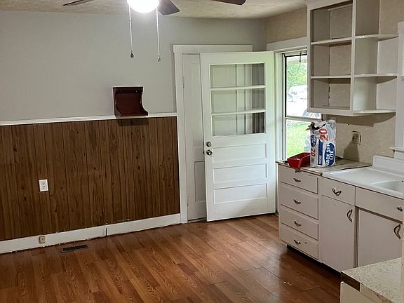 2 (possibly 3) Bedroom / 1 Bath house for rent in Carlisle, KY. The house sits on a large lot, has a 1 car attached garage, and has hardwood floors throughout. Wall color may be slightly different as these are old pictures and we are doing some painting. This house has central heat and air. Refrigerator and stove are included. Washer/Dryer hookup in garage.