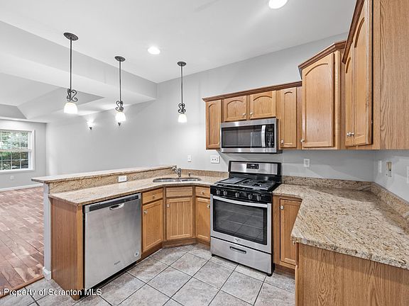 Welcome to 371 Orchard St, a stunning townhome nestled in The Orchards of Old Forge, PA. This beautiful rental features a mix of premium amenities, comfort, and convenience, and is ideal for individuals seeking high-quality living with little to no maintenance. Nestled on a serene cul-de-sac, this townhouse sits in a prime location close to eateries, retail options, and straightforward interstate connections, presenting a perfect spot for professionals, families, or individuals seeking a mix of peaceful suburban life and city amenities. This gorgeous home features a generously sized open concept layout that blends living, dining, and kitchen spaces perfectly for gatherings or family time. It showcases beautiful hardwood & tile floors throughout. The kitchen includes granite countertops, stainless steel appliances and plenty of cabinets, making cooking efficient and enjoyable. With 3 large bedrooms and 2.5 baths, this home offers plenty of spaces for separation as well. High ceilings throughout lend to the living situation feeling quite roomy, open and bright. A spiral staircase leads to a versatile third-floor flex-space loft with skylights, ideal for an office, library, artist studio, or anything you can dream of. Highlights also include a 1-car garage, driveway, private back patio with beautiful pavers for outdoor entertaining, and is surrounded with professional landscaping. Grab the opportunity to make 371 Orchard St your new home! Call listing agent today to schedule a viewing and don't forget to ask about the other rental options we currently available right in the heart of Old Forge!