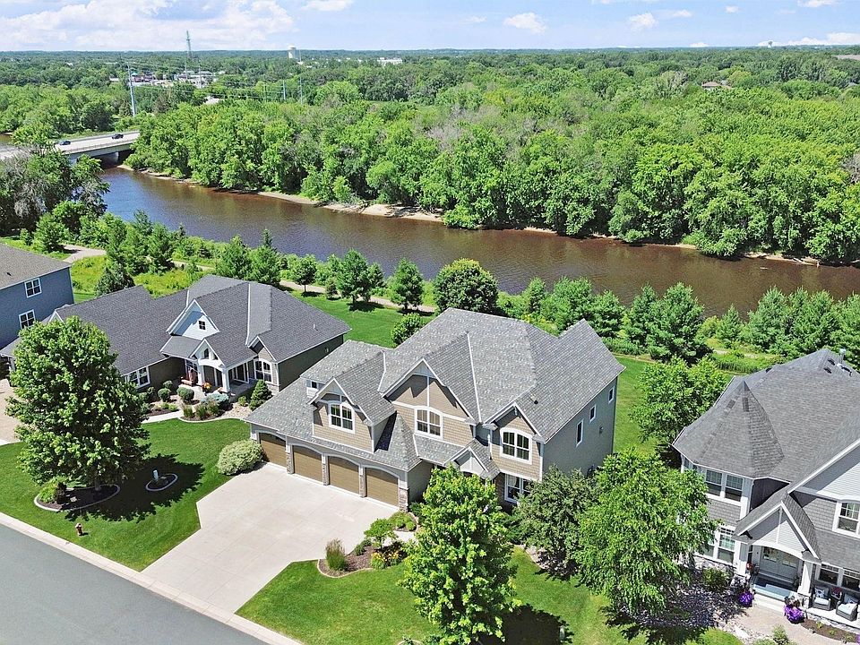 Rare opportunity to live right on the Rum River in a pool community! This previously built Hanson home features a gourmet kitchen w/ stainless steel appliances, large island, & pantry. The stunning 2-story great room is highlighted w/ a gas fireplace, built-ins & plenty of windows to let the light in. Also on the main level is an office, dining room, & bonus room w/ a view of the 2-story sport court. The expansive upper level includes 4 bedrooms, 2 of which share a Jack & Jill bath. Through the double doors is the luxurious primary suite, w/ ensuite featuring a corner tub, walk-in shower, a large walk-in closet & laundry room. The impressive walk-out lower level is complete with a wet bar, a living room w/ a stone fireplace, & a workout room that leads into the sport court! Patio doors open up to a concrete patio in the fenced in backyard w/ steps leading up to a beautiful deck! You’ll love the spacious 4-stall garage. Located near downtown Anoka, near parks, & community dock access!