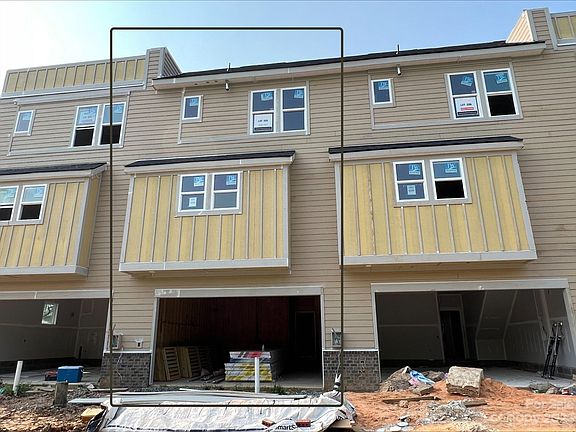 3-story townhome; 1st floor has 2-car side-by-side garage, double driveway and guest suite. Sliding door leads from Living to deck. Kitchen features a large island, 42" Bleu cabinets, quartz counters, herringbone mosaic tile backsplash, Kohler undermount stainless sink, UC lighting, double trash pullout, & SS app w/ gas range & French door fridge. 3rd floor landing has large linen closet & laundry w/ side-by-side washer & dryer included. Premier Suite features a walk-in closet & bathroom w/ water closet, bleu cabinets, quartz counters, 12" x 24" tiled floor, 3" x 6" suede grey tiled shower w/ shampoo niche. Full baths include bleu cabinets, Fairy white quartz counters and tiled floors. Oak treads on on all stairs, with wrought iron balusters on the main stairwell. LVP flooring is at the entry and first-floor bedroom, throughout the 2nd floor, and 3rd floor hall. This home is 1.5 miles to uptown and has easy access to Stewart Creek Greenway and the upcoming Savona Mills.