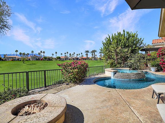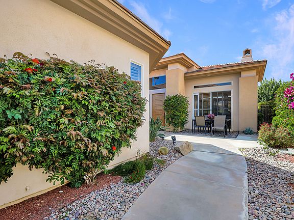 Available November 2025 & December 2025. Leased 2026 season. Experience the ultimate desert retreat with a seasonal lease in the prestigious Indian Ridge Country Club in Palm Desert. This stunning west facing home is offered fully furnished, allowing you to simply arrive and unwind. Step into a sunlit, open-concept living space designed for both comfort and style. Floor-to-ceiling windows and sliding doors frame breathtaking golf course views, while the expansive great room sets the stage for effortless entertaining. Outdoors, soak in the beauty of the desert from your private patio, complete with a sparkling pool and spa, built-in BBQ, and front-row seats to unforgettable sunsets, plus fully fenced backyard. New flooring throughout plus upgraded kitchen, totally remodeled primary bathroom, dual vanities, a walk-in shower, and a separate soaking tub for ultimate relaxation. Two additional guest rooms each feature their own en-suite bathrooms, ensuring privacy and comfort for family and friends. Home is powered by smart power solar and new Tesla battery keeping energy bills very low! Nestled in one of Palm Desert's most sought-after private country club communities, this home offers the perfect blend of tranquility and convenience. With easy access to Interstate 10 and the Palm Springs airport, you're just minutes from world-class shopping on El Paseo known as the 'Rodeo Drive of the Desert' as well as exceptional dining, entertainment, and vibrant cultural experiences from La Quinta to Palm Springs. The owner takes care of HOA fees, trash, pool maintenance, gardening, cable TV, and internet, with utility costs covered up to a set limit. Don't miss this opportunity to enjoy the best of desert living in an unbeatable location!