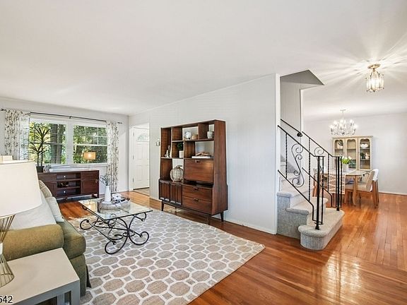 Welcome home to this charming 4 bed, 1.5 bath Colonial in the desirable Oak View neighborhood of Bloomfield. The first floor boasts a bright living room, formal dining, and a sparkling white eat-in kitchen with stainless steel appliances, pale granite, and white oak flooring. A convenient powder room is also on this level. Enjoy beautiful hardwood floors in the living and dining rooms, newer thermal windows, recessed lighting, central air, and excellent closet space throughout. Upstairs, you'll find four spacious bedrooms and a full bath with a tub shower. The finished basement offers a fantastic bonus area perfect for a playroom or rec room. Head outside to a beautifully landscaped backyard with a spacious patio and mature trees, creating a peaceful, private oasis. A one-car attached garage and a wide driveway with space for two more cars complete this perfect picture. Plus, you're just moments away from shopping, major highways, and NYC transportation.