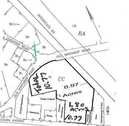 Augusta.s # 1 Development Site I 95 visability 10.77 acres of land great frontage on western ave and old winthrop rd. natural gas line on both roads.