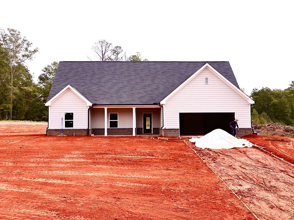 This stunning Craftsman-style ranch home ... Sits on stunning 1.5 acres of land!! OH not to mention! NO HOA, features three spacious bedrooms, two full bathrooms, and a striking exterior blend of Hardie Plank and brick water table. Notable Elements include an expansive garage, granite countertops throughout, LVP flooring, a cozy living room fireplace, and charming front and rear porches. The master bathroom showcases tile accents and a separate soaking tub, complemented by a spacious kitchen with white cabinetry. The dining room benefits from abundant natural light, creating a warm and welcoming ambiance. Bring your RV plenty of parking on your property. Great location and peaceful! Conveniently located mere minutes from schools, grocery stores, restaurants and I-85.