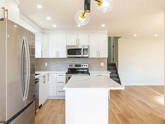 Fully renovated 4-level split corner unit in the Mature neighbourhood of Kiniski Gardens! This 5-bed, 2.5-bath home offers over 1,900 sq ft of modern living space. Upgrades include shingles (2024), newer vinyl windows (last 5 yrs), high-efficiency furnace (2025), and hot water tank (2025). The chef’s kitchen features quartz countertops, custom cabinetry, and stainless steel appliances. Bright main floor with tiled electric fireplace, premium vinyl plank flooring, and plush carpet throughout. Upstairs includes 3 bedrooms—primary with 2-pc ensuite—and a fully renovated 4-pc bath. The finished basement with a Separate Entrance offers 2 more bedrooms, another 4-pc bath, and a spacious rec room with plumbing and electrical rough-ins. Pot lights throughout, brand-new doors, casings, Zebra Shades, and hardware. Oversized double garage with plenty of room for storage and projects