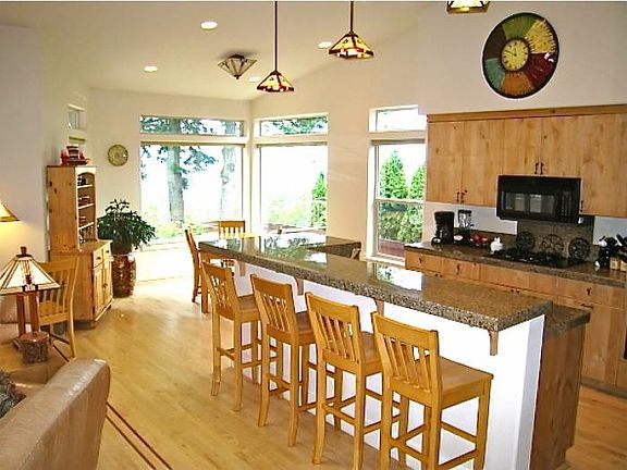 Outstanding Columbia River VIEW and neighborhood site of 2003 Parade of Homes. High vista views of the Columbia River and East to Crown Point. Plush 1-level ranch. Huge entry, custom built-in Neal Kelly cabinets, vaults and quality details throughout. Surround sound, hardwood floors, granite kitchen with island and double ovens. French doors from master bedroom and kitchen lead to a covered VIEW deck spanning the entire rear of the house and plumbed for gas BBQ. Excellent home...Don't miss this one!