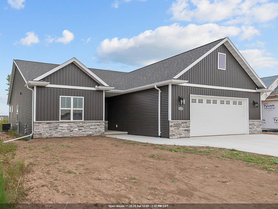 Fabulous flow through the living areas and rich finishes. Kitchen features a generous sized island in addition to a large dining area. Kitchen appliance package included. Huge owners suite with walk in closet and bathroom suite. Good sized main floor laundry. Smart video door bell and smart thermostat. Enjoy the roomy garage, this plan features an extended garage similar in size to a 3 car. Location includes trail access, close to Badger Sports Park and soccer fields, Appleton North and new elementary school. Great access to HWY 41 in a quiet setting. Restaurants, the Dog Park and Memorial Park, are all within a short drive. Enjoy ALL of the lifestyle that Trail View South provides! *NOTE: Virtual tour shows optional features not included in this home. Photos are of a similar house.