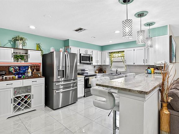 Experience the perfect blend of modern comfort and flexible living in this beautifully updated 3-bedroom, 2-bath home — plus a private 1-bedroom, 1-bath studio! NO HOA AND NO CDD TAX. Step inside to discover elegant tile flooring throughout, creating a clean and contemporary feel. The bright and open living room flows seamlessly into the stylish kitchen, featuring a granite breakfast bar, brand-new stainless steel appliances, and a convenient wine fridge — perfect for casual dining or entertaining guests. The spacious primary suite offers an updated ensuite bathroom with a shower-tub combo, while two additional bedrooms share a second full bath. One of the bedrooms includes French doors leading to the large screened-in porch — the perfect place to relax and enjoy Florida’s indoor-outdoor lifestyle. The garage has been thoughtfully converted into a private 1-bedroom, 1-bath studio suite with its own separate entrance — ideal as an in-law suite, guest quarters, or income-producing rental. Outside, unwind or entertain in the backyard retreat featuring a screened-in patio, a large concrete deck, low-maintenance artificial turf, an inviting above-ground pool, and a spacious custom-built deck perfect for gatherings. Two sheds with electrical provide extra storage and workspace, and the oversized driveway offers plenty of parking for residents and guests. Peace of mind comes with a new roof (2019) and new A/C (2019). Conveniently located less than 30 minutes from Downtown Tampa, 15 minutes from USF, and just 10 minutes from Busch Gardens, this home provides easy access to top entertainment, education, shopping, and dining options. Don’t miss your chance to own this versatile, move-in-ready home in a prime location!