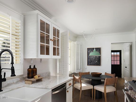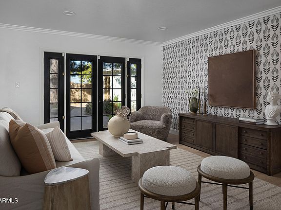 Nestled in the heart of Arcadia Osborn, this beautifully updated home sits on a quiet, tree-lined street just a short stroll from the Greenbelt, perfect for morning walks or bike rides. The thoughtfully designed floor plan includes 4 bedrooms, 3 baths, a flex bonus room, and a backyard office/casita. Newly installed wood floors run throughout the entire home, creating warmth and flow. The 2022 primary suite addition offers vaulted ceilings, French doors to the backyard, and a spa-like bath with heated floors and shower bench plus ample closet space. Enjoy an updated kitchen with marble and custom Old Sol reclaimed wood countertops, a spacious pantry, and a farmhouse sink. Entertain with an integrated indoor/outdoor sound system and unobstructed Camelback Mountains from the front yard.