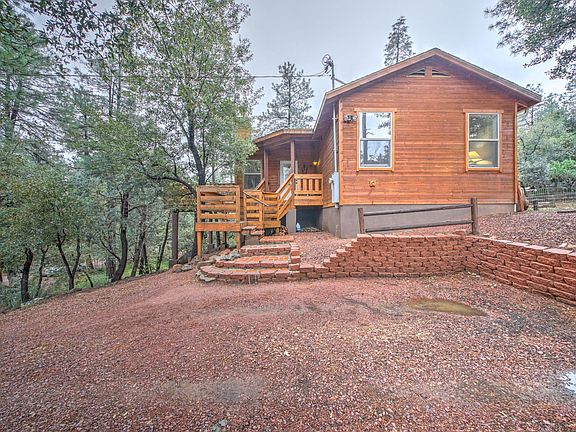 WELCOME TO YOUR NEW HOME IN THE PINES! THIS BEAUTIFUL NEWER WELL CONSTRUCTED SINGLE LEVEL HOME IS ALL READY FOR YOUR WEEKEND GET AWAY OR YOUR NEXT PARADISE HOME IN THE PINES, OUT OF THE BIG CITY. ENJOY THE LARGE FAMILY ROOM WITH SOARING VAULTED CEILINGS & COZY FIREPLACE, TONS OF KITCHEN CABINETS, HUGE MASTER BDRM WITH. EN-SUITE BATH ALONG WITH DUAL SINKS & WALK-IN CLOSET. RETRACTABLE BLINDS, CENTRAL AIR CONDITIONING, DUAL PANE WINDOWS, LARGE GUEST BEDROOM & GUEST BATH, LOTS OF STORAGE. YOU'LL REALLY ENJOY YOUR TREE HOUSE DECK AS YOU HEAR THE WIND WHISTLING THRU THE TOWERING PINE FOREST & GAZE UP AT THE ENDLESS STARS. OR CATCH A GLIMPSE OF THE ROAMING ELK AND DEER. THIS HOME SITS ONE STREET AWAY FROM THE NATIONAL FOREST AND AN AWESOME HIKING TRAIL. PINE, IS AZ'S BEST KEPT SECRET. HURRY! AT THE BASE OF THE BREATHTAKING RIM IN THE QUAINT TOWN OF PINE, FILLED WITH GREAT RESTAURANTS, ANTIQUE SHOPS, LIBRARY, POST OFFICE AND MILES AND MILES OF FOREST AND TRAILS, LAKES AND CREEKS NEARBY. (A BEAUTIFUL SHORT 90 MIN. DRIVE FROM THE VALLEY AND ALMOST 20 DEGREES COOLER AND NO 1-17 TRAFFIC JAMS. (SHOW IT AND YOU SELL IT!