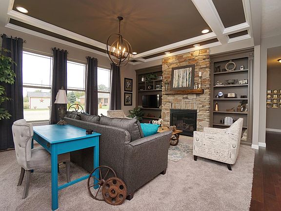 Fantastic Ranch Floorplan. Approx 2000SF, Modern Craftsman Design. Great Room w/Coffered Ceiling, Stone FP and Build-in Bookcases, Many Custom features throughout- Former builder's model home now for sale. Finished basement with family room, den and full bath.