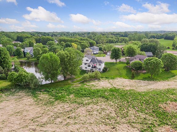 Absolutely stunning four bed, 3 bath two story on a beautifully landscaped 1.68-acre lot on a pond. Super private. Wetland views. A spectacular home with soaring ceilings, large rooms and excellent floor plan. Kitchen with granite. Stainless appliances. Granite baths. Heated three car garage and four-season porch. Three 3 bedrooms on upper level! Master bedroom w/ private full bathroom. A main level bedroom also great for den or office. Unfinished lower-level walkout. But easy to complete. Exquisite sunsets & more! Home is ready to go. And priced and packaged ready to go for you!