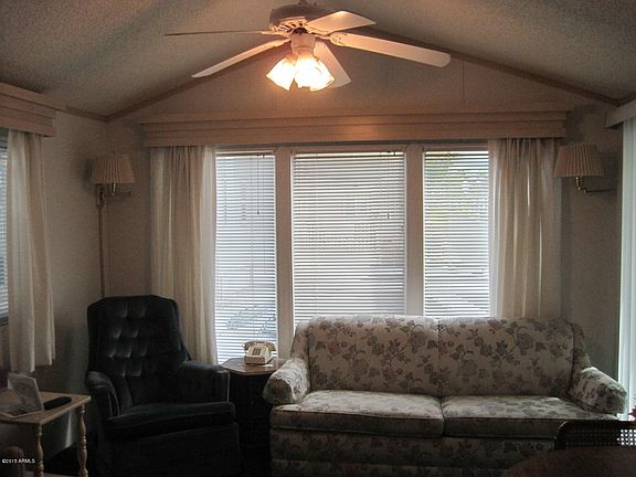 OWN your own Land in the fabulous, 55+ active adult community of Golden Vista. Homeowners own their own land & their OWN FUN! This park model is on the West wall with great Mountain views out the front. Living room has sofa, 2 recliner chairs, and vaulted ceiling w/fan. Nice entertainment area w/TV and cabinets. Bump out dining area w/ table & chairs. Galley kitchen w/fridge, full size stove, portable microwave and generous pantry cabinets. Great cabinets and vanity in bedroom plus large closets w/drawers under. Master bath has a full size tub/shower and storage cabinet. AZ room has tiled floors and stacked washer/dryer. Great room to enjoy. Storage room has shelving and provides space to make a small workshop. Owner is motivated and will consider any reasonable offer.