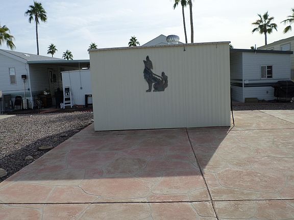 Come experience the finest in resort style living in Golden Vista Resort. Fabulous 55+, gated, active adult community with amenities and activities galore. Plus you OWN the Land! This lot features a full concrete pad w/stamped concrete design, 10x12 shed, all RV hook ups and gorgeous views of the Superstition Mountains. Fun, active, community street. This lot is adjacent to and can only be sold with park model/AZ room #681. Ideal for your RV site, move in a new park model or park your RV and live in unit 681. Please call today for more information and to schedule a showing.