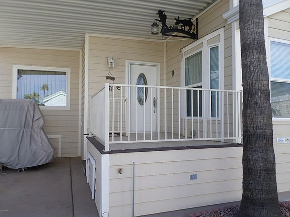 2008 Cavco 1bed/1.75 bath w/AZ room. Approx. 780 sq. ft. Gorgeous mountain views from the tiled front deck. Popular front kitchen w/breakfast nook, flat top stove, dishwasher, built in microwave, fridge/freezer & pantry, Formal dining area. Queen bed, built in dresser & mirrored closet in bedroom. Tub/shower combo in master bath. Linen storage in hallway. Large AZ room w/coat closet @entry, sleeper sofa, built in entertainment center, electric fireplace & office nook. 3/4 bath & laundry in AZ room. Newer stacked washer/dryer. Door to back patio & attached shed w/workbench. All on one level. Dormer type windows, skylight, retractable screen @front entry, storage under deck & AZ room. Carpet, tile & laminate flooring. Golf cart is negotiable. Golden Vista Resort. Own the Land. Own the Fun!