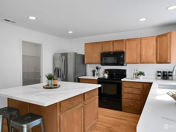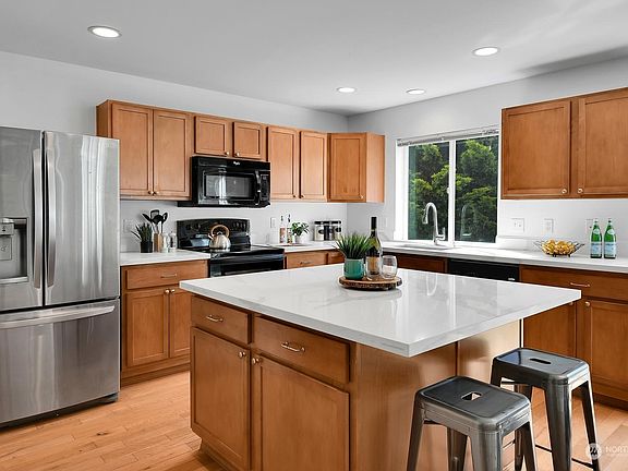 MAJOR PRICE IMPROVEMENT! The Snoqualmie Ridge Home you’ve been waiting for! Welcome to this spacious layout with 2,910SF of living space. On the main level through glass french doors is a convenient large den. Kitchen, w/walk-in pantry, and new quartz counters flows to the spacious family room. Through sliding glass doors is your backyard w/patio entertainment area which backs up to a greenbelt. New paint and carpet makes this home shine Bright. Upper floor has an open Rec room. All bedrooms are generously sized with a huge primary bed/bath featuring new bath vanity, floors and a huge walk-in closet. Friendly, tree lined cul-de-sac with extra street parking. Enjoy Snoqualmie and all of its amenities. Schools, pool, shopping, golf, etc...