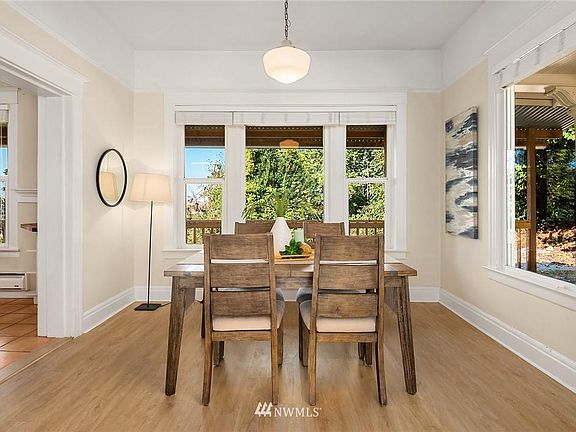 1911 craftsman w/ old world charm. 10' ceilings w/ lots of windows for light & airy spaces. Verdant territorial views. Updated chefs kitchen w/ island, new bathroom w/ tile surround. Daylight basement w/ 9' ceilings & separate entrance, kitchenette, bath, living room, potential bedroom. Attic space has additional potential to expand & capture territorial & sound views. LR1 zoning allows flexible options. Super location at private street end, blocks to future rapid transit stop & bike trail.
