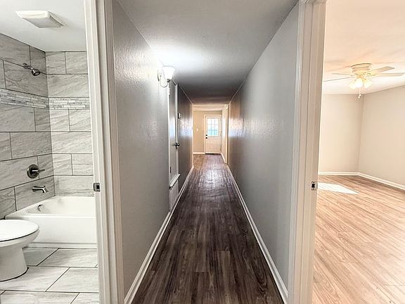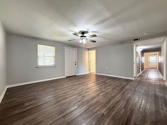 Inside you will find a spacious layout with ample storage space. This home has been freshly painted with new cabinets and stainless steel kitchen appliances.(Not pictured). Off the kitchen, you also have a large dining area with an open concept feel. All three bedrooms are large with natural lighting and tons of closet space. The two full bathrooms have modern upgrades with custom tile tub surrounds.