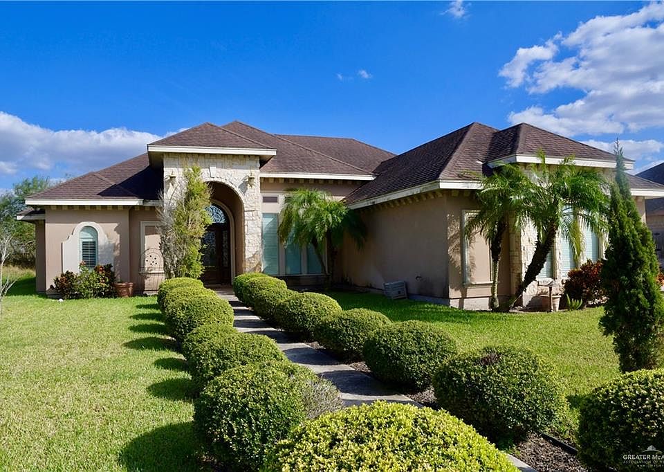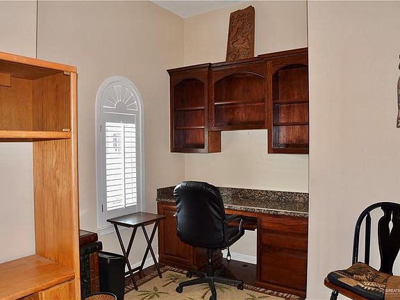Spacious and well designed 3/2.5/2 in Weslaco, this home is built for those who love to entertain. Upon entering the home, you immediately feel the openness as you look out to the large covered back patio! At the entrance, you find the office/study complete with a built-in desk. In the living room, you have full access to the kitchen, dining room, and a right off the living room is a door that leads to the back patio. The split bedroom design offers added privacy to the master suite which boasts a double vanity sink, garden tub, separate shower, and a large walk-in closet. The other 2 bedrooms include a Jack & Jill bathroom. Throughout the house, you will find plantation shutters on the windows, tile flooring w/carpet in the bedrooms, decorative ceilings, and more! The back patio is spacious in size and includes an outdoor fireplace; the backyard is fully fenced for added privacy. The home is being sold fully furnished and with all appliances convey with the sale!