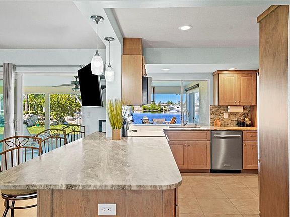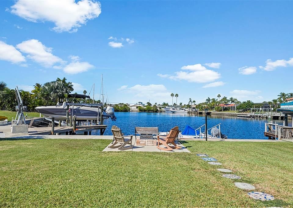 Newer private dockElegant leathered granite countertopsNew appliancesExpansive backyardWaterfront homeBrand new flooringFresh exterior paint