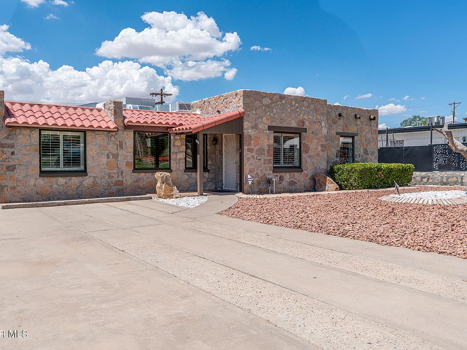 Step into timeless charm with this historic Kern Place rock house, nestled in the heart of El Paso! This gem boasts glowing original hardwood floors, elegant built-ins, and wood shutters that exude classic character. The decorative fireplace adds warmth to the inviting living spaces, while the spacious lot offers RV parking and a great backyard perfect for gatherings. Both bathrooms have been refreshed, with the primary featuring a timeless marble-like feel and dual sinks. All windows are recently replaced, and fresh interior paint enhances the home's vibrant appeal. The rear door is Pella brand and opens to an -inspired outdoor space, complemented by a lush trees. With refrigerated AC and a prime 79902 location within walking distance to Mesita School, near UTEP and the Medical Center, this home is ready to enjoy. Priced for you to add your personal touch, this Kern Place treasure blends historic allure with modern updates, offering the perfect canvas to make your own on a generous lot in a coveted area.