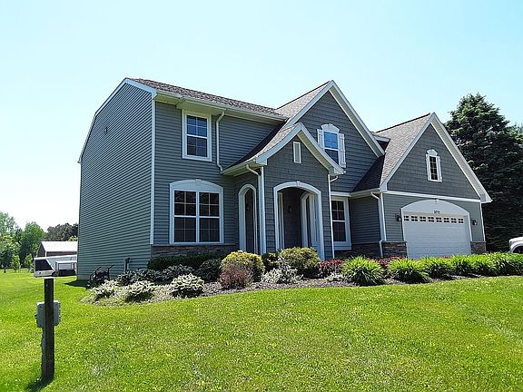 House built and finished in Dec. of 2011 by Mayberry homes. Beautiful home on almost 7 acres with pond with open grass , wooded area with trails and 30 x 50 insulated barn with wood heat. House has 2 1/2 car garage with higher door 7' for taller vehicles. First floor has large kitchen open floor plan with walk in pantry, 1/2 bathroom, with formal dining and cafe area off of kitchen, ceiling is 9' throughout first floor with all 8' foot doors and entry ways. Lots of natural light with large windows, very spacious. Has office or called flex room on first floor. Second floor has large loft area one side has potential for fourth bedroom , has laundry , 3 bedrooms, 2 bathrooms , master suite has walk in closet with connect bathroom. Lower level has finished living area and workout, with theater room(optional 4 bedroom) has pre plumbed bathroom area not finished and has large utility room. Total of 4400 sq ft of house. House is located in a country setting and directly across the street from golfing, easy to get to mason , very convenient. No walk through or showing at this time, must have pre approval letter from bank to set up appointment, will be selling online sale with virtual walk through with buyer no onsite walk through at this time. Serious inquires only.