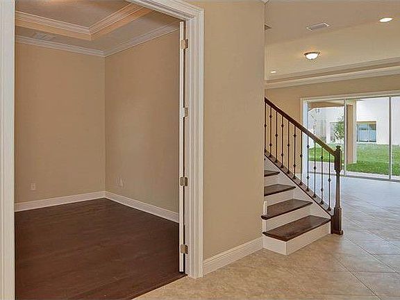 - Interior Features: Ceiling Fans(s), High Ceiling(s), Master Bedroom Downstairs, Open Floorplan, Crown Molding, Solid Surface Counters, Built in Features, Tray Ceiling(s)