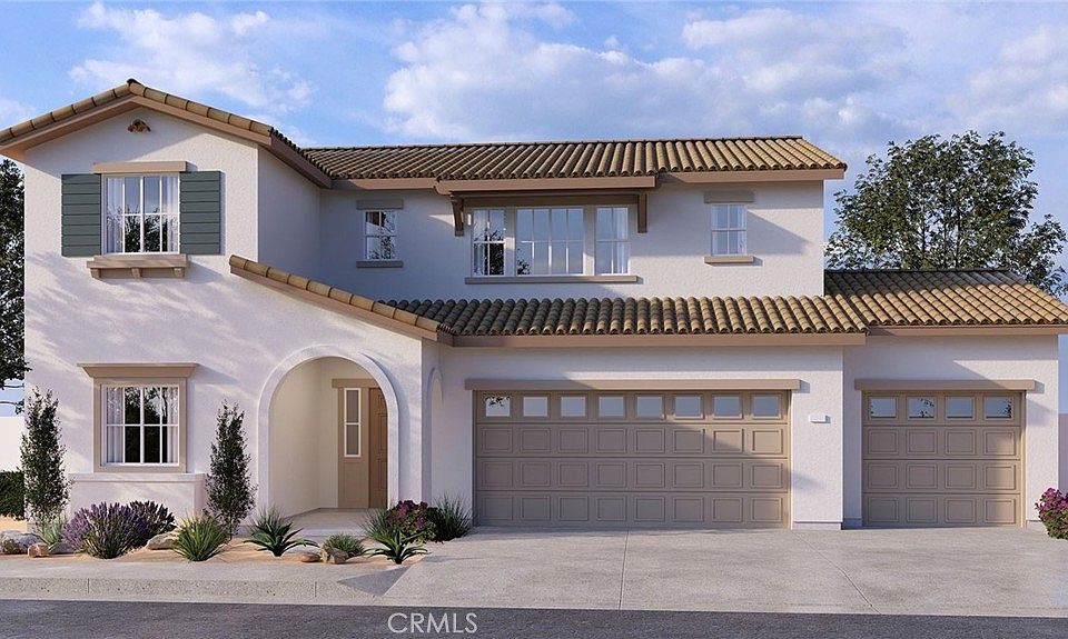 NEW CONSTRUCTION and QUICK MOVE-IN in Wildomar! This 2,239-square foot home has a California Spanish exterior facade and features a DOWNSTAIRS BEDROOM and full bath. Upstairs is the primary bedroom with ensuite, two additional bedrooms, two full bathrooms, and a LARGE LOFT area. The upstairs laundry room has a separate storage area as well! The island kitchen with breakfast bar includes a Whirlpool stainless steel gas cooktop and oven, microwave, dishwasher, Bianco Tiza Quartz countertops and a pantry closet. This home also features Crisp White Shaker-Style cabinetry throughout and upgraded vinyl flooring in the main living areas and plush carpet in the bedrooms, closets and stairs. The direct access 3-car garage is pre-plumbed for an electric car! This truly modern home has all of the Smart Home features that you would expect in a new home and the front yard is fully landscaped and irrigated. The community is situated close to neighborhood parks, shopping and just minutes to freeway access. This home will be ready for move in Mid December. **HUGE SAVINGS!! SOLAR is INCLUDED at "No additional cost to your buyer" - it is INCLUDED IN THE PRICE OF THE HOME**
