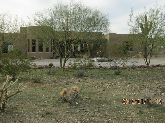A Pilot's Dream Home with it's own Airplane Hanger. Located on it's own Private Airstrip. Attached Guest Quarters makes this an Ideal Floorplan for Anyone who enjoys Peace & Quiet plus Views of our Beautiful Arizona Landscape. Front & Rear Patios Provide the Tranquility desired by all. Good Size Kitchen with Breakfast Room. Living Room is Bright and Light. The Master includes a Luxurious Bath Retreat. Take time to look at the pictures & view the Amenities. Storage for everything you will ever need in the Hanger! Plus, additional slab parking for more toys OR you can store your plane outside with the tie-downs already there! Circular Drive complete with Pavers. Guest Quarters includes Large Living Area plus 1 Bedroom and Bath.
