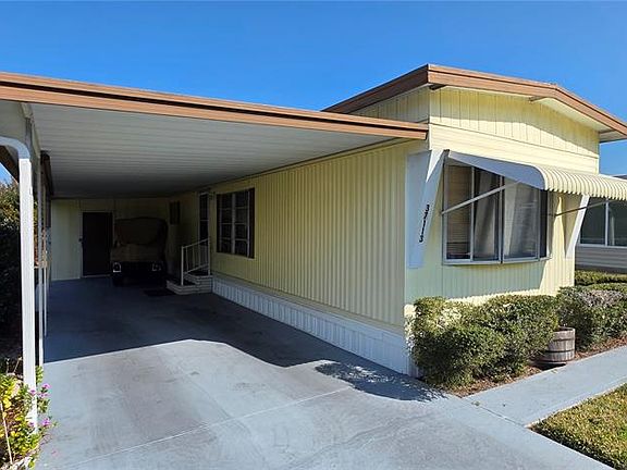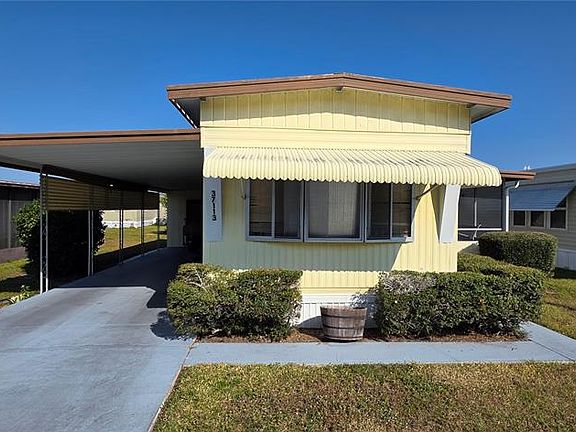Move-in ready 2-bedroom, 1-bath home with a split bedroom layout, combining the living room and eat-in kitchen for an open feel. The hall bath features a walk-in shower, and the main living areas have updated flooring. Bedrooms are carpeted and include built-in dressers. Enjoy the raised screened porch with access from the living room. An attached utility shed offers storage, a workbench, and a washer and dryer. Fully furnished including all major appliances and comes with a newer Yamaha golf cart and charger. Located in Betmar Acres, an active and friendly 55+ community where you own your land. No Lot Rent! and low annual dues of $475.00 make this home an attractive option for those seeking an active lifestyle in a vibrant community. Betmar Acres offers lots to keep you busy including, Bingo, dances, three 9-hole golf courses, 2 swimming pools, 2 hot tubs, Bocci ball, mini golf, horseshoes, indoor shuffleboard courts, park library, pickleball, tennis, 3 clubhouses, cards, billiards & darts and more. Schedule your appointment today.