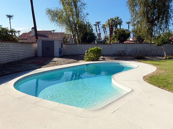 Sought-after historic Tamarisk area, this retro 1972 is located on a 11,761 sq.ft. lot and is ready for your touches and updating. The home starts with a sweeping frontage. Entering the home you will notice sliders that lead out to the large private pool yard with covered patio and the surrounding towering palms, all perfect for entertaining. Enjoy hanging out in spacious comfortable living room with adjoining open dining room. The kitchen is bright and has a convenient breakfast bar for casual meals. There is a master and two guest suites. Stay cool with central air conditioning and save money with the separate evaporative cooling system. The partially finished double garage has roll-up door and has direct access from the home. The awesome neighborhood boasts majestic palms & was a former working date ranch. Utilities are underground for an uninterrupted view! The location is minutes from shopping, dining, hiking, newer dog park, tennis, award winning library & new observatory.