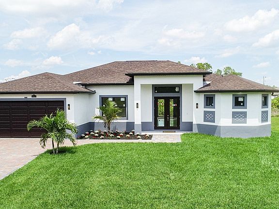 NEW CONSTRUCTION single-family home offers 2,503 square feet under air, totaling 3,394 square feet, featuring 3 spacious bedrooms, 3 bathrooms, and a versatile den. Everything you need including a master suite with his-and-her walk-in closets, dual sinks, a walk-in shower, and a separate soaking tub. Enjoy the open lanai with an outdoor kitchen and a sleek 3-panel sliding door. The gourmet kitchen boasts a spacious island, stunning quartz countertops, modern white cabinets, and kitchen appliances included. Additional features include a walk-in pantry, laundry room, a 2-car garage, and a beautifully sodded home-site with lush St. Augustine grass and a multi-phase automatic sprinkler system.