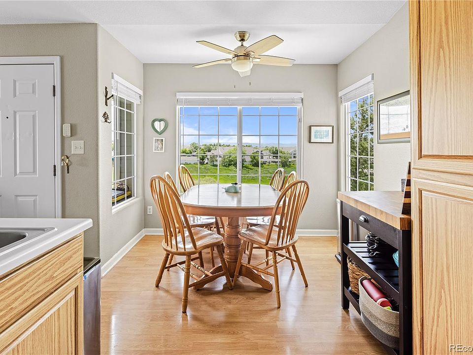 Welcome home to this beautiful 2nd floor condo with 2 bedrooms, 2 full bathrooms and a 1-car detached garage. This unit is situated perfectly in a prime location within the Canyon Ranch community providing excellent mountain views from the front porch, kitchen and primary bedroom. The unit is private and secluded on the backside of the community with access to the open space, pond and greenbelt trails! The condo features large bedrooms with lots of closet space, including a primary bedroom walk-in closet, vaulted ceilings in the living area and master bedroom, double sinks in the primary bathroom, a gas fireplace in the living room and balcony off living area. And don't miss the access you'll get to all four state-of-the-art Highlands Ranch Rec Centers, plus an exercise room, pool, hot tub and clubhouse in the Canyon Ranch community. Matterport 3D Tour: http://3712cactuscreekcondo.com/