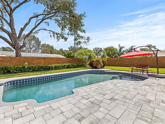 Nestled in the heart of Bloomingdale and surrounded by highly rated schools, shopping, and dining, this beautiful 4-bedroom, 3-bath home offers the perfect balance of character, comfort, and convenience. From the moment you walk through the front door, you can feel how loved and cared for this home has been. The energy is warm, inviting, and full of life. Gorgeous hardwood floors flow through most of the home, adding timeless charm and continuity. The front room glows with natural light at sunset—an ideal spot for a cozy family space or a formal dining area. The kitchen features newer appliances, an island, granite countertops, and beautiful wood cabinetry, creating a comfortable space for cooking and gathering. Sliding doors from the kitchen open directly to the patio, while another set from the living room leads to the covered screened lanai overlooking your backyard oasis. Designed for true Florida living, this private retreat features a resort-style pool surrounded by pavers, lush landscaping, and multiple spaces to relax or entertain. Enjoy your morning coffee in the screened lanai or unwind under the spacious covered patio—staying dry and comfortable even during the summer afternoon rainstorms. It’s the kind of space made for backyard barbecues, celebrations, and peaceful evenings by the pool. The home’s layout is both functional and flexible. On the first floor, a bedroom and a beautifully updated full bathroom provide the perfect space for guests, extended family, or anyone seeking extra privacy. Upstairs, double doors open into the primary suite, complete with a spa-like ensuite bath featuring a walk-in shower and double vanity. Two additional bedrooms and a third bathroom with soaking tub are also upstairs, updated with thoughtful details that blend seamlessly with the home’s character. This home has been thoughtfully maintained and upgraded, so you can move in with confidence. Major updates include a new roof (2023), HVAC (2023), pool pump motor (2024), whole-home plumbing re-pipe (2021), wood fence (2021), exterior paint (2023), and modern bathroom renovations throughout. And with no mandatory HOA, you have flexibility—join if and when you choose. This is more than a house; it’s a home filled with warmth, care, and good energy. Come experience it for yourself and imagine making your own memories here.