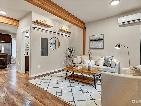 2 years old: roof, plumbing, electrical, and gorgeous, high end finishes throughout. Keep cool during these warm months with mini splits. Cook up a feast in your beautiful kitchen that connects to your dining room and family room. Huge flex space upstairs is great for toys, homework, or a movie night. Downstairs hosts the primary bedroom with its own full bathroom, a quiet area for reading or work, and large utility room. Two assigned parking space in alley entrance. Mins to parks and Everett waterfront to enjoy fine dining or walk to seasonal farmers market. Less than a mile to I-5 for an easy commute. Ask about a FREE 1% rate buy down for a year!
