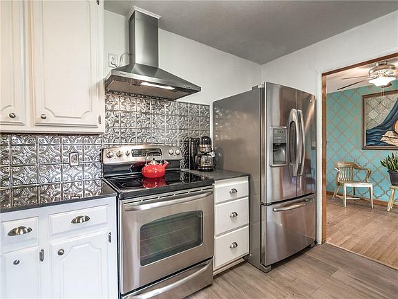 Very well kept home with TONS of major updates! Original wood floors and fresh paint throughout. Additional drive through carport on side of home. Major updates include: New roof 2013, Water supply main 2015, bathroom remodel 2015, Energy Efficient windows 2015, 6' Cedar stockade fence 2016, all new kitchen appliances 2016, New hot water tank 2016, new vinyl siding 2017, new HVAC combo unit + blown insulation 2017, kitchen remodel 2018. Carpet in dining area to be replaced prior to closing. Inside access from garage. Large storm shelter in backyard. Refrigerator to stay with acceptable offer. This home has been very well maintained and is ready for new owners! ***NOT IN A FLOOD ZONE PER FEMA FLOOD MAP***