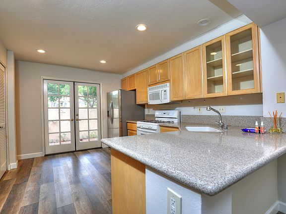 Uptown Santa Barbara townhome near Whole Foods, La Cumbre Plaza & the new Target store. This 3 bedroom, 3 bath + an office with built-ins that is separated from the living room by a cozy gas fireplace has recently been remodeled with beautiful new wood laminate floors, plush new carpet in the bedrooms, new baseboards, freshly painted interior, modernized bathrooms, and it gets plenty of natural light from the abundant dual pane windows and skylights. Both of the upstairs bedrooms have their own private bathrooms and the convenient downstairs bedroom has easy access to the third bathroom. Other features include tall vaulted ceilings, a private outdoor enclosed patio, and an attached two car garage. The association features a large sparkling pool with sundeck and a relaxing spa.