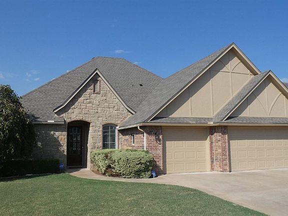 Tony Capuccio with Capuccio Dream Homes Realty is the property specialist regarding this home. For an appt. to view please contact Tony at 580-585-2337 or tony@tonysdreamhomes.com. Experience luxury living in one of Lawton's most famous Eastside neighborhoods. Come view this phenomenal French country style residence with over 2200 square feet of living space and an semi-open concept floor plan that is ideal for entertaining. Includes 4 bedrooms plus an office with wood floors and French doors; 3 full baths, laundry and a 3 car garage. Impressive brick exterior with attractive rock accents and arched entry porch add curb appeal outside. Attractive engineered handscraped wood flooring (2023) in living room and ceramic tile flooring throughout home except carpet in bedrooms. Generous sized family room featuring gas log fireplace. Spacious bedrooms with jack and jill bathroom; Gorgeous Chefs kitchen boasts fabulous granite tops and backsplash with elevated bar; a bonanza of cabinetry; pantry & stainless steel appliances including cooktop and side by side refrigerator. Private master bath retreat includes granite tops with his/her vanity and massive walk-in closet; separate walk-in tiled shower and jetted tub. Other appointments include soaring 10' ceilings, canned lighting; plantation shutters (2020), decorative light fixtures & hardware; partial floored attic; Concerned about OK storms? Under garage STORM SHELTER installed with hydraulic press (2015) for peace of mind. New HVAC units installed (2023). Exterior boasts; covered patio; guttering, fully wood fenced backyard, sprinkler system, established yard and New architectural shingles in 2025. BBQ grill is new but has not been hooked up and to be taken in as-is condition. . Eastside schools and quick access to Fort Sill. Enjoy Sanctuary right now - here from the daily hustle and bustle of life. Eastlake walking trail and pond nearby. HOA dues $640 annually cover common grounds including pond access for fishing.